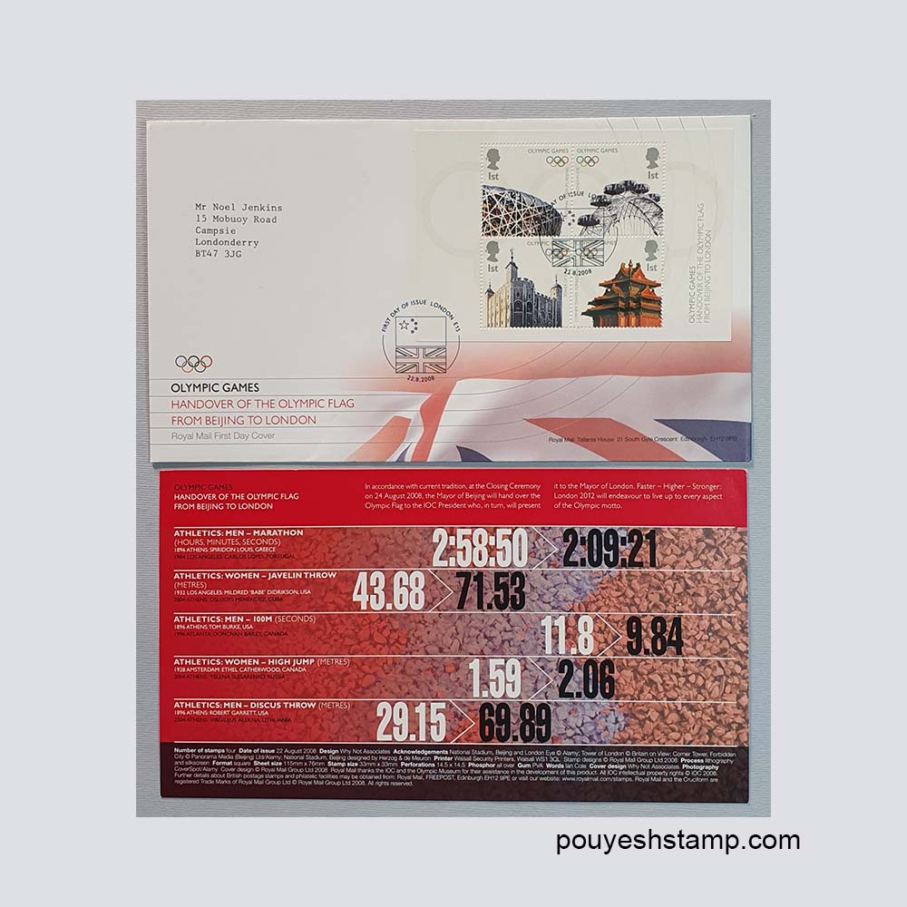 پاکت مهر روز تمبر المپیک چین-انگلستان(پوندی)2008